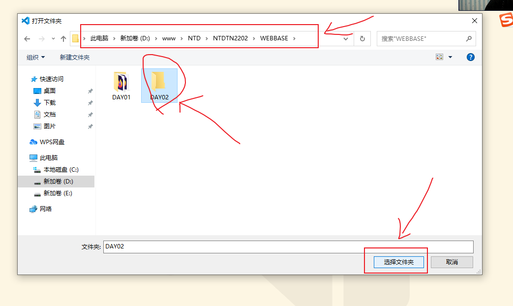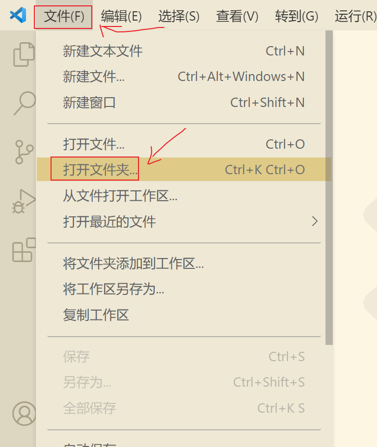 1)如果本地已经有存在的文件夹,可以直接选择 文件→打开文件夹→选择文件夹