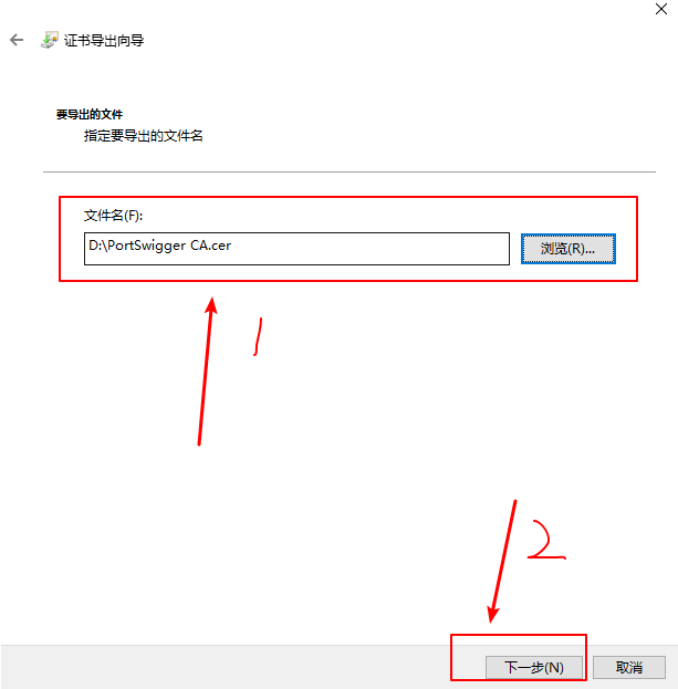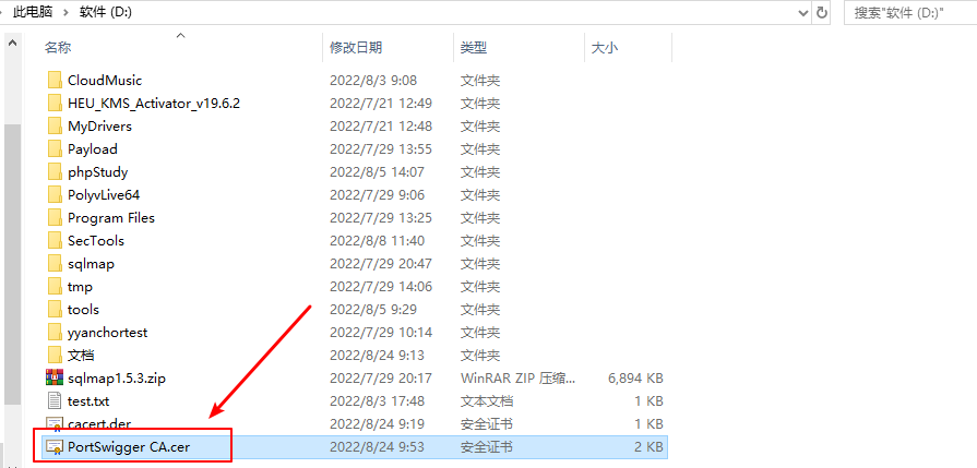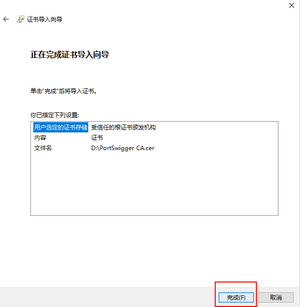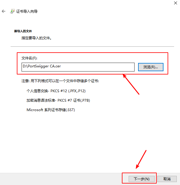 设置文件名为PortSwigger CA.cer