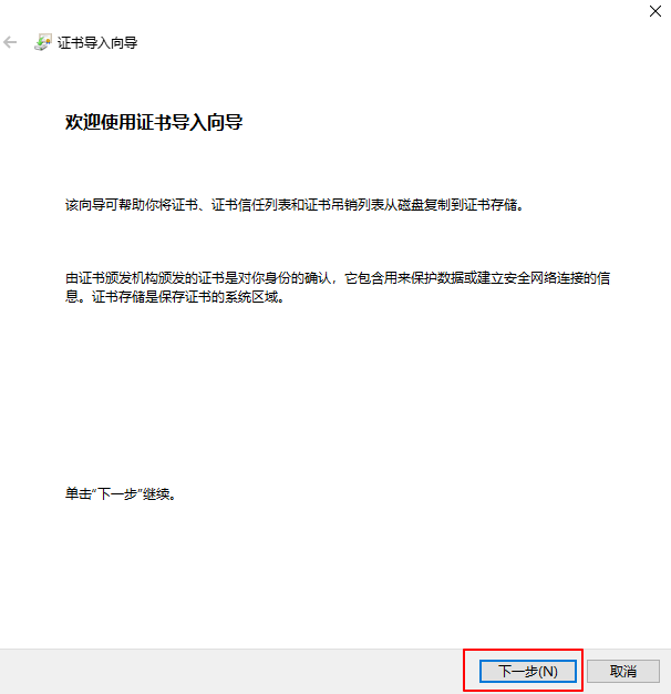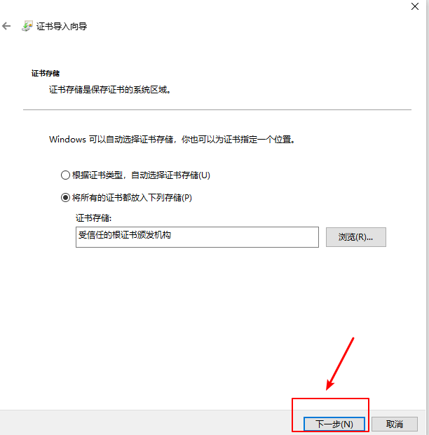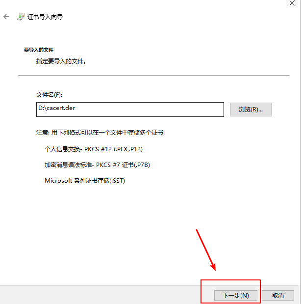 6.导入我们第一步下载的der文件,导入后一直点击下一步,出现导入成功弹窗即可