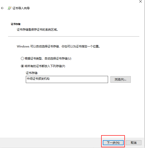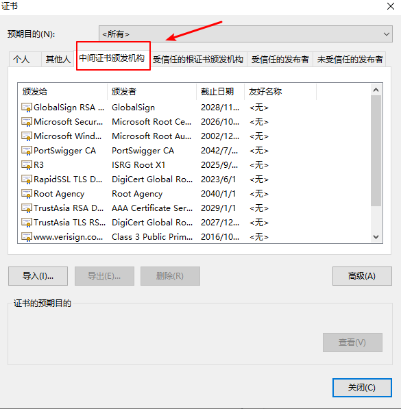 5.选择 中间证书颁发机构
