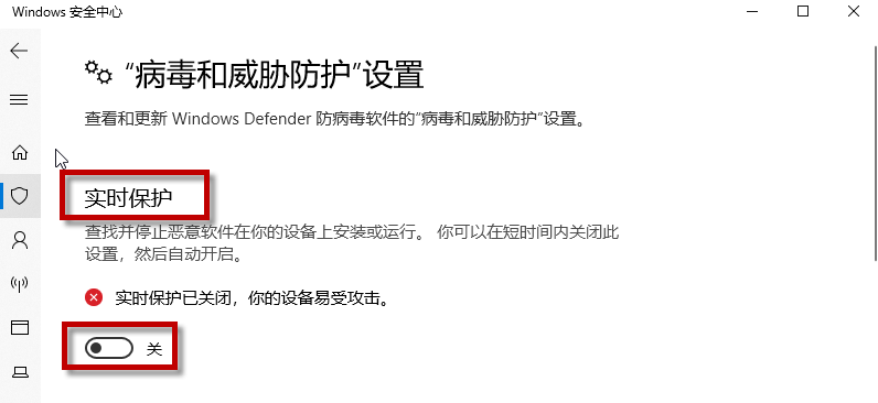 ① 关闭掉靶机上的实时保护,防止大白鲨木马被灭掉