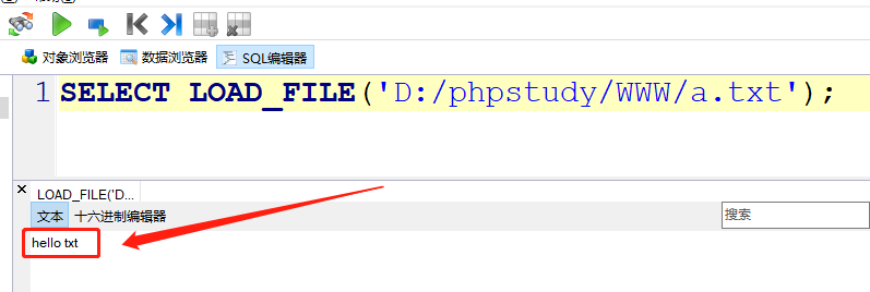 LOAD_FILE('文件路径/文件名'),点击执行按钮;